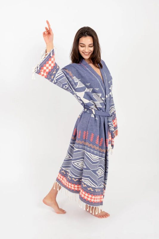 Organic Leopard Robe, Beach Kimono, Cotton Kaftan, Turkish Bathrobe